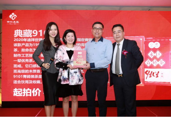 開業(yè)儀式上,湖南省茶葉體系首席專家包小村、中國制茶大師盧明德為現(xiàn)場簽售拍賣的“偉仁永巨黃金磚”親筆簽名。偉仁永巨黃金磚為“茶祖神農(nóng)杯”金獎茶,2020年迪拜世博會中國館宴會廳官方指定青磚黑茶。經(jīng)過青磚茶的渥堆冷發(fā)酵和茯磚茶的金花發(fā)花兩大工藝精心制作而成的黃金茶,加上兩位茶專家加持,恰逢盛宴,現(xiàn)場拍賣十分熱烈!