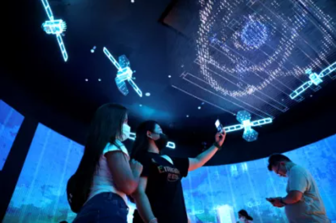 △ 探索北斗分展區(qū),游客舉起手機(jī)進(jìn)行拍攝